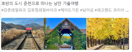 | 춘천 여행 가볼만한곳 (1) | 2023.09.10 |