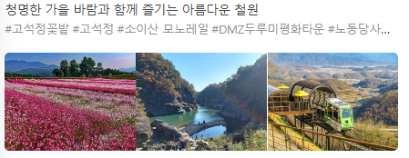 고석정꽃밭 고석정 소이산 모노레일 DMZ두루미평화타운 노동당사 모노레일