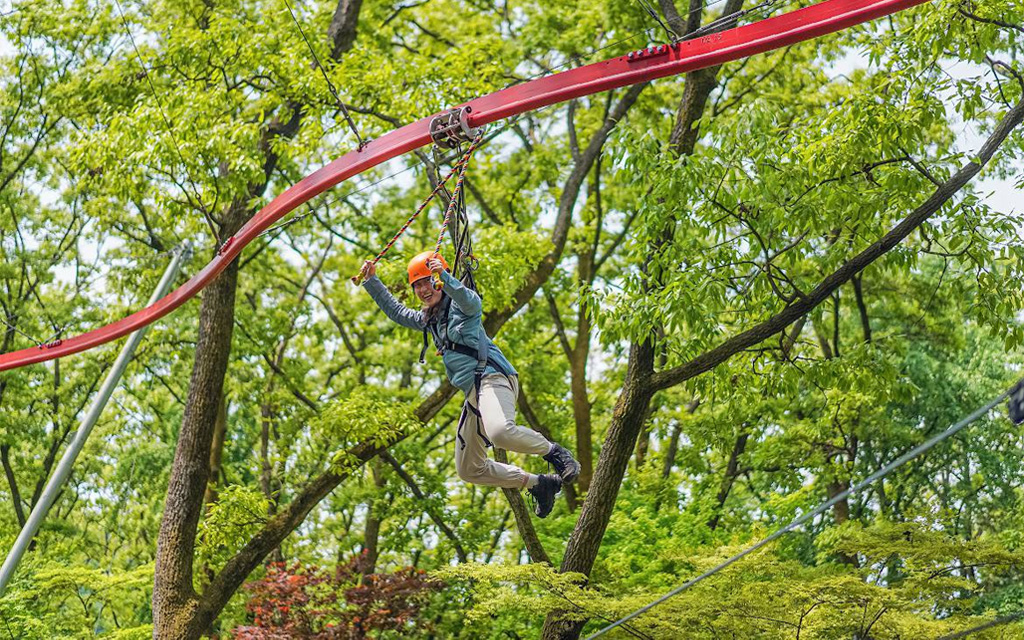 모험의숲 tree go는 와이어 로프와 플랫폼으로 연결된 나무사이를이동. 짚라인, 트리코스터,트램플린,나무터널,흔들그네등 다양한 게임이 있으며,성인/청소년 코스와 어린이 코스로 온가족이 즐길수 있습니다