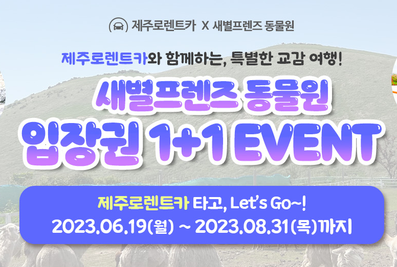 제주 로 렌터카에서는 23년도 신차들로 9인용 하이브리드 리무진도 준비되어 있으며 최신형 하이브리드 차량들도 준비되어 있습니다. 또한 23년 솔라티 15인승도 준비되어 있습니다. 아이들과 함께 제주 여행을 하시는 분들에게는 너무 좋은 이벤트인 새별프렌즈 동물원 1+1 이벤트와 에코랜드 테마파크 야간관람 입장권이 할인 제공됩니다