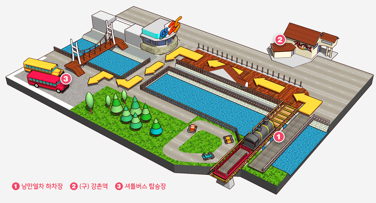 셔틀버스 탑승장(강촌마을 주자장) 주소 : 춘천시 남산면 강촌리 671-5