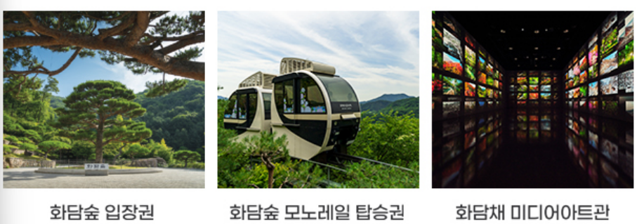 ✅ 패키지 구성 : 1) 화다숲 입장권, 2) 화담숲 모노레일 탑승권 ,3) 화담채 미디어아트 관람권