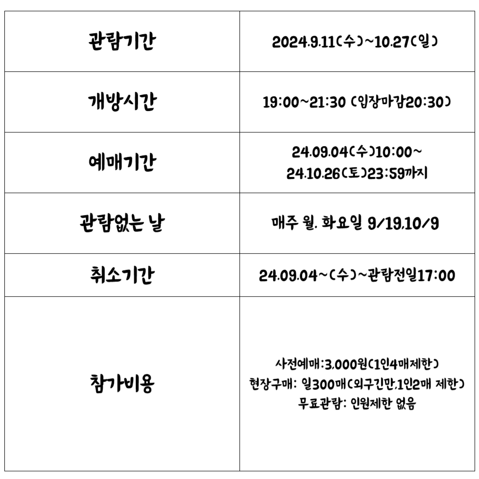 *본행사는 관람전일 23:59분까지 예매가능하며,환불및 취소는 관람전일 17:00분까지 가능합니다(당일예매취소불가)