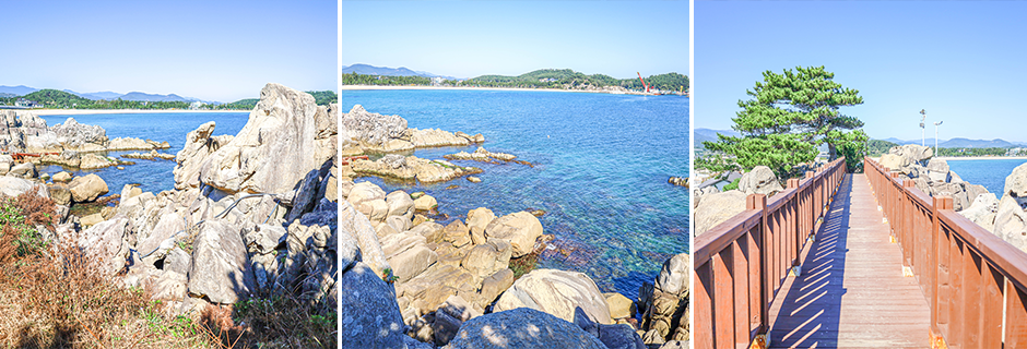 특히 이곳에서 바라본 동해바다는 에메랄드빛을 띄고 있었어요. 저 역시도 바위 위에 올라가서 인증 사진 한 컷을 담아봅니다. 구석구석 걷다 보면 자연이 빚어낸 다양한 작품들을 감상할 수 있어요.